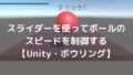 メーターがかなり少ない状態でボールを投球すると、ボールが止まるまで結構時間がかかってしまい次の投球までの待ち時間が長くなってしまうので、気になる場合はボールのRigidbodyの「Drag」の値を増やすと良いと思います。